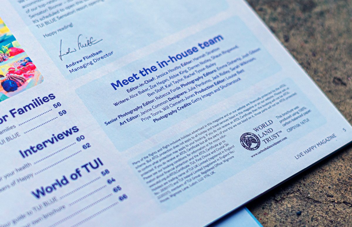 Towards the end of the brochure production cycle I was asked to help finalise some page designs for the new TUI Live Happy magazine, the first major print magazine to be created following TUI’s new brand identity was introduced. So it was a great chance to get hands on with designing to new standards.
