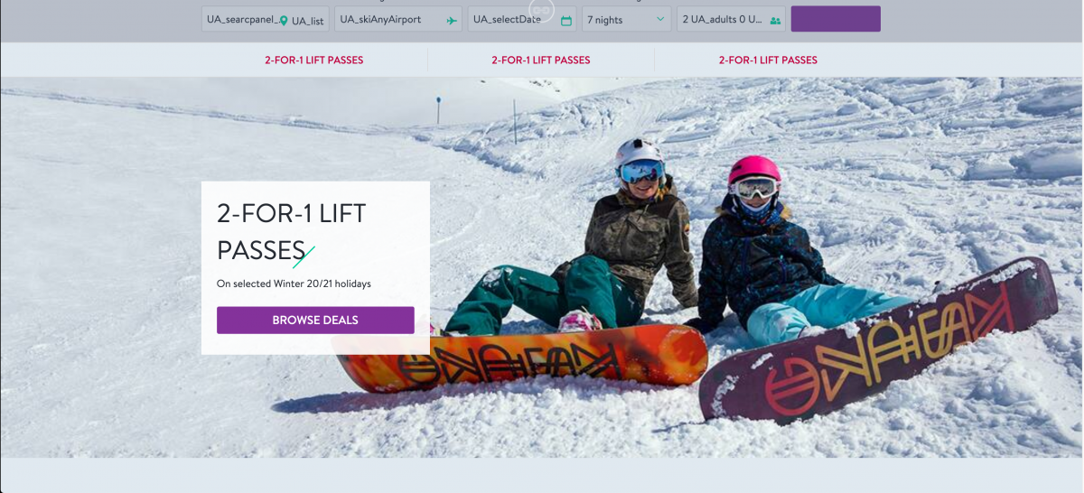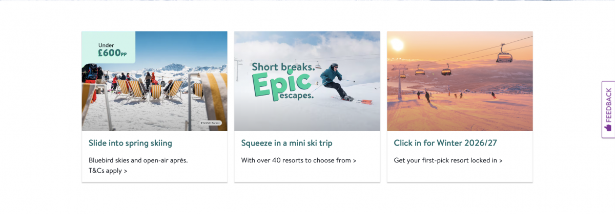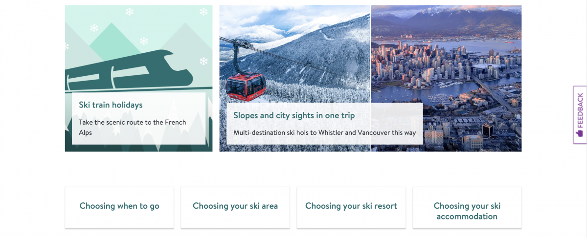 After introducing the idea of more designed banner graphics and A/B test was performed agains the standard content management system banners. The designed graphics saw a +90% click-through increase and an improvement in click to book, as a result designed hero graphics are now the standard and have evolved with design guideline updates.