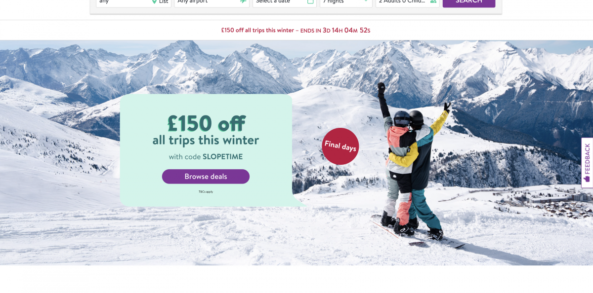 Throughout my time with Crystal Ski Holidays I’ve always tried to improve the performance of our merchandising banners, either through selecting the right image or, in this case adding design for greater impact.
